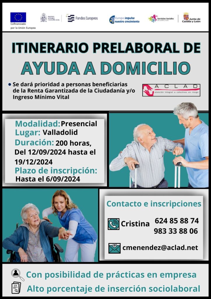 Abierto el plazo de inscripción para el nuevo ‘Itinerario prelaboral de Ayuda a Domicilio’ en Valladolid