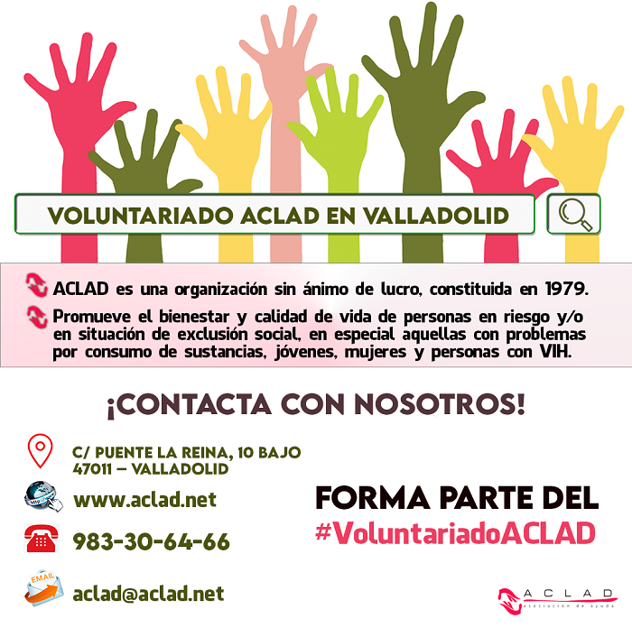 | 2 noviembre 2021 | Buscamos voluntarios/as para nuestra sede de ACLAD en Valladolid |