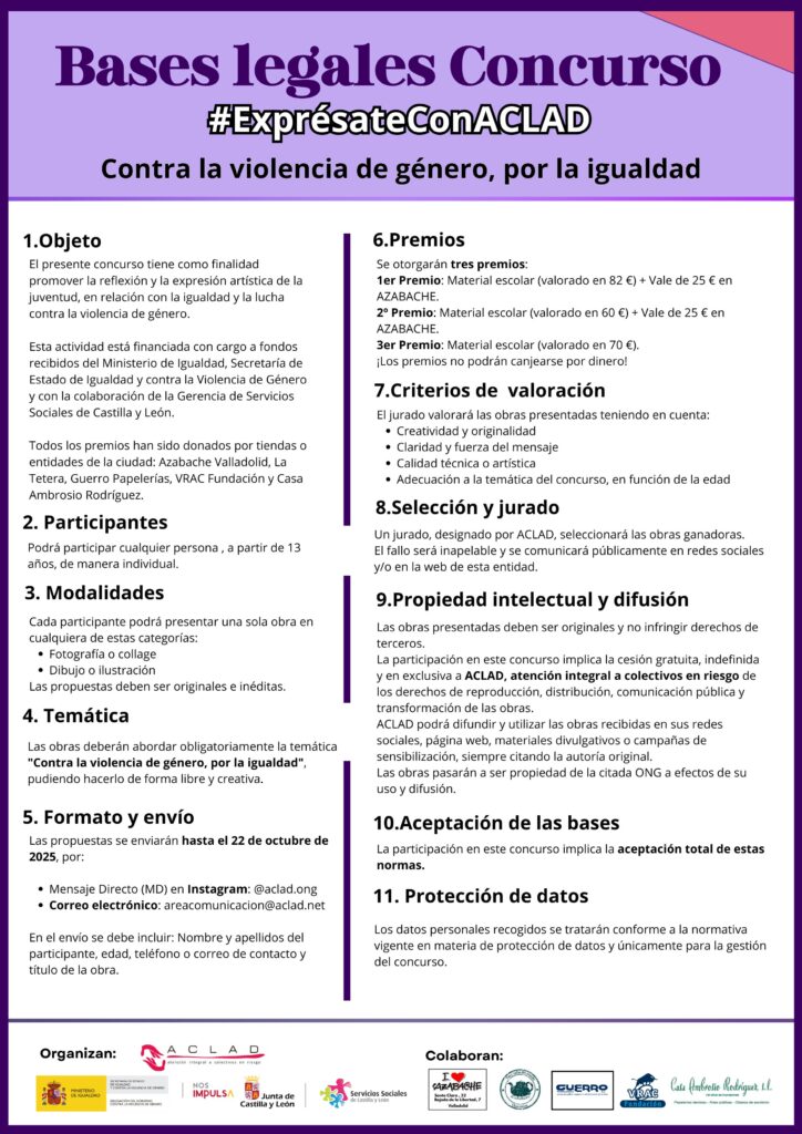 | 17 septiembre 2025 | Bases legales Concurso #ExprésateConACLAD: ‘Contra la violencia de género, por la igualdad’ |